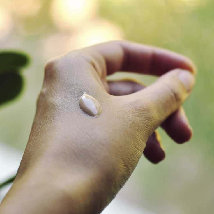 Blend gently with fingertips in a patting motion for best absorption and a natural finish.