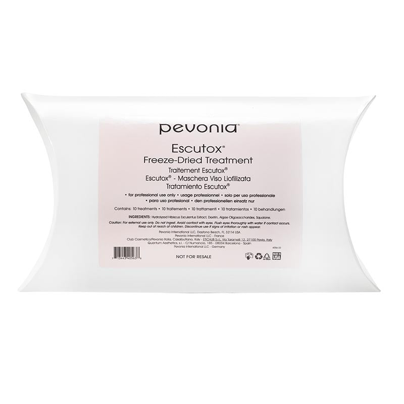 Escutox® is a special blend of Hibiscus Esculentus Extract and Oligo-Saccharides in a potent freeze-dried formula. This latest freeze-drying technique preserves the natural active ingredients with the unique ability of delivering the most outstanding and effective de-aging results. By powerfully stimulating the nerve ending’s network, Pevonia’s exclusive Escutox® formulation provides radical repair: evident relaxation of harsh wrinkles, increased hydration, and skin suppleness, expedited absorbency of all actives and visibly smoothed wrinkles.