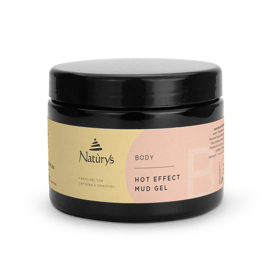 This powerful mud gel combines concentrated caffeine, grape seed phytoextracts, and capsicum for a thermoactive and reducing effect that revitalizes the skin and boosts its permeability—helping it better absorb treatment actives.