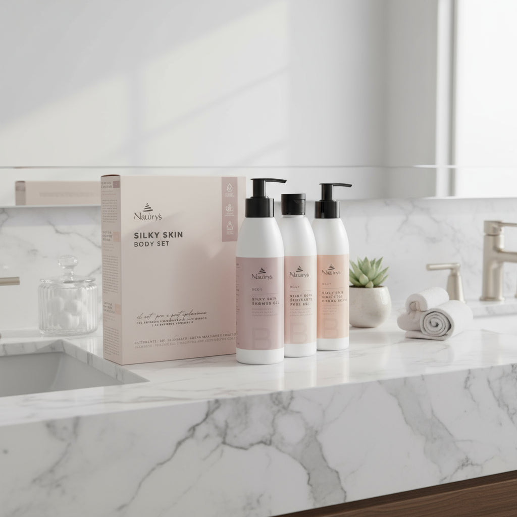 The Naturys Silky Skin Body Set offers a luxurious three-step routine designed to prepare and maintain your skin before and after waxing or epilation.