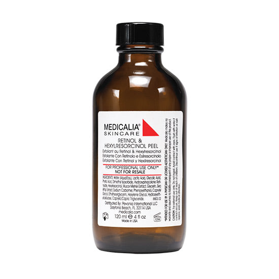 The Retinol & Hexylresorcinol Peel delivers powerful exfoliation and skin renewal for visibly smoother, brighter, and firmer results. Retinol accelerates cell turnover and repairs damage, while hexylresorcinol reduces pigmentation for an even skin tone. Combined with glycolic, lactic, and phytic acids, it resurfaces skin, diminishes fine lines, and restores density.