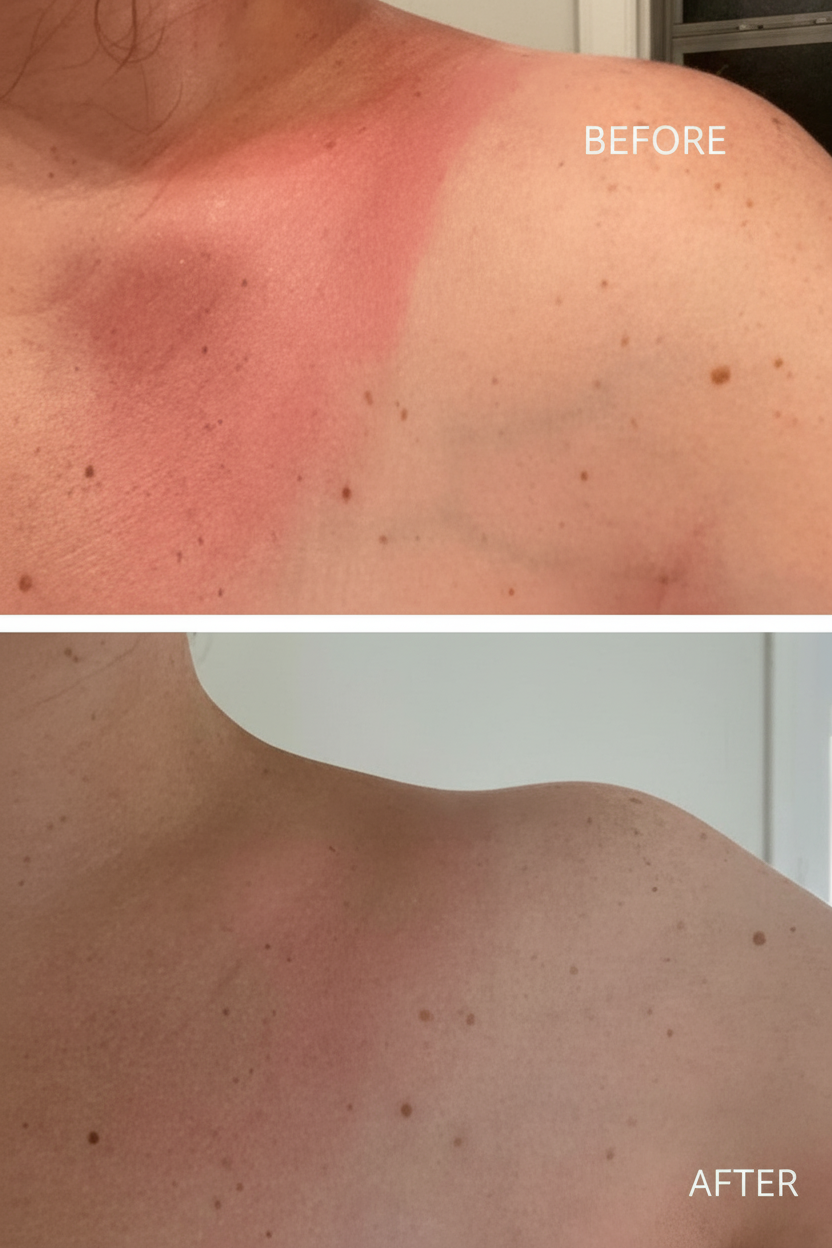 A professional-strength, cooling botanical wrap formulated to rapidly reduce heat, redness, and discomfort in sunburned or highly sensitised skin.